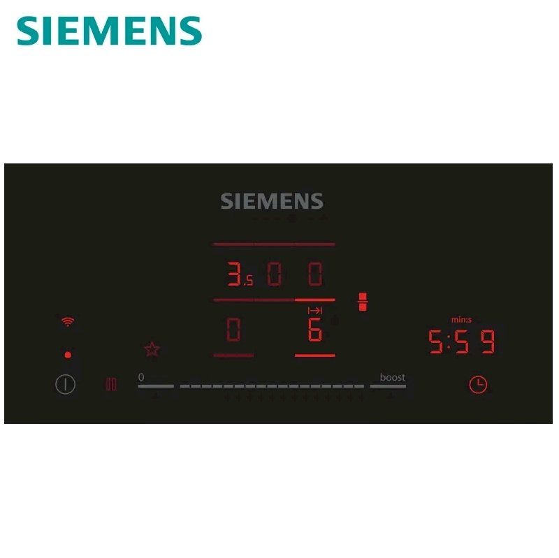 This 80cm wide full power induction hob from Siemens features an intuitive slider control for easy and precise adjustment of the cooking power. With a pair of rectangular zones as well as circular zones, it's very flexible in the choice and shape of pans you can use.