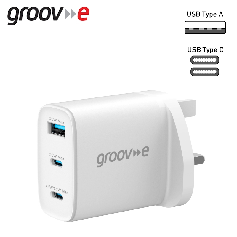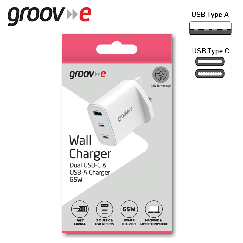 Groov-e USB A and Type C 65W GaN Mains Charger (GVMA109WE)