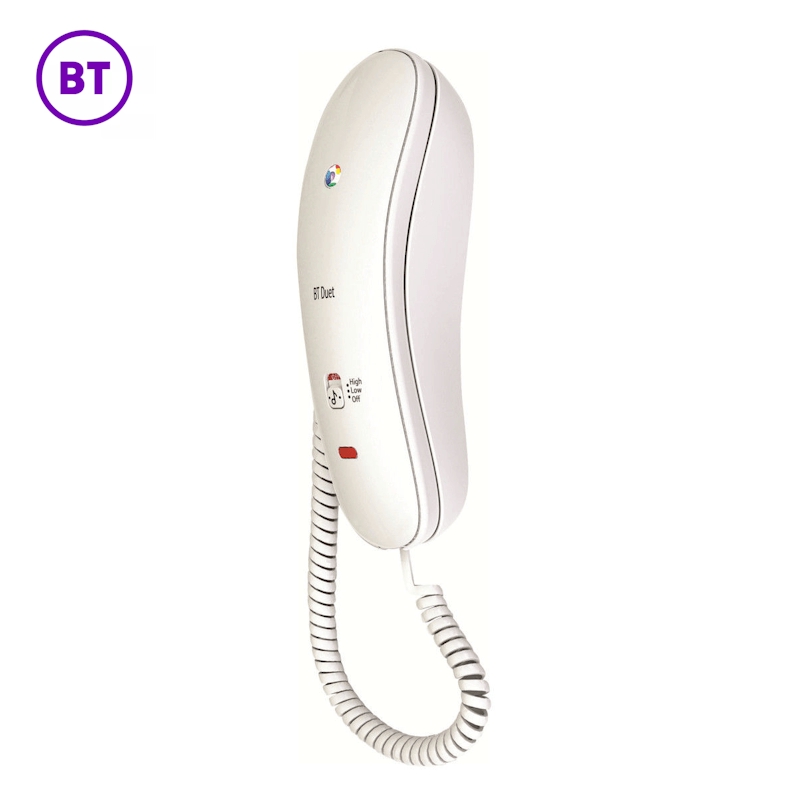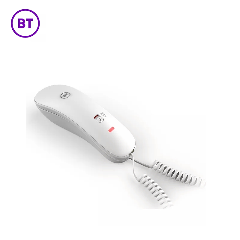 High quality gondola style corded phone from BT, with easy to read buttons, ringer high/low/off switch and is wall mountable
