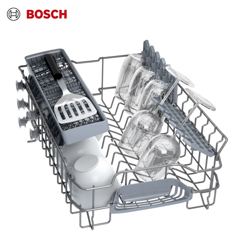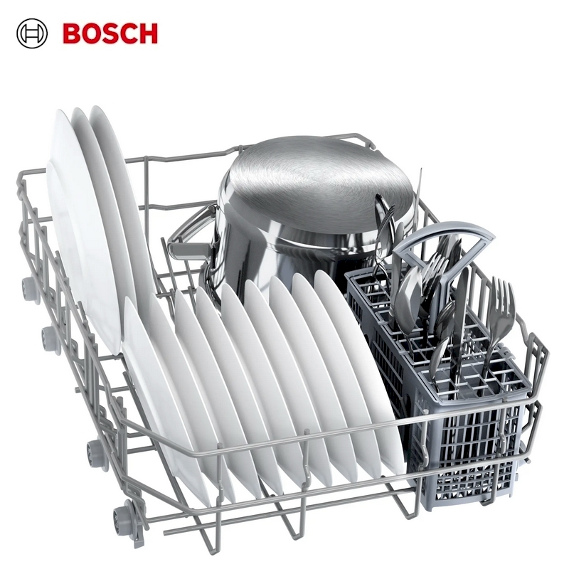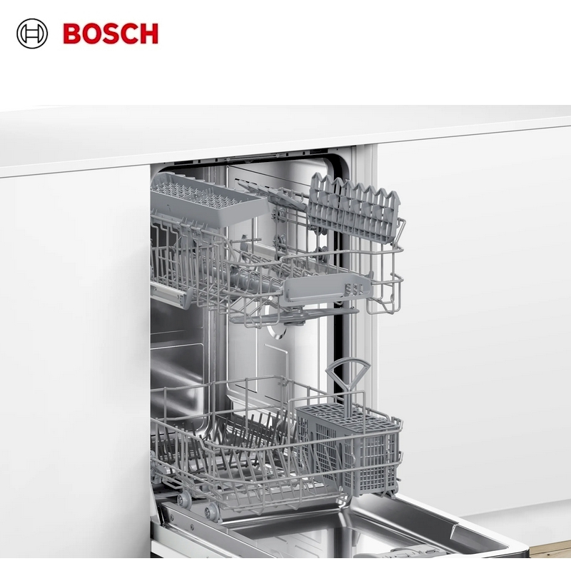 Simple and nicely made narrow integrated dishwasher from Bosch, with a good selection of programs from a quick wash to an economical long cycle.