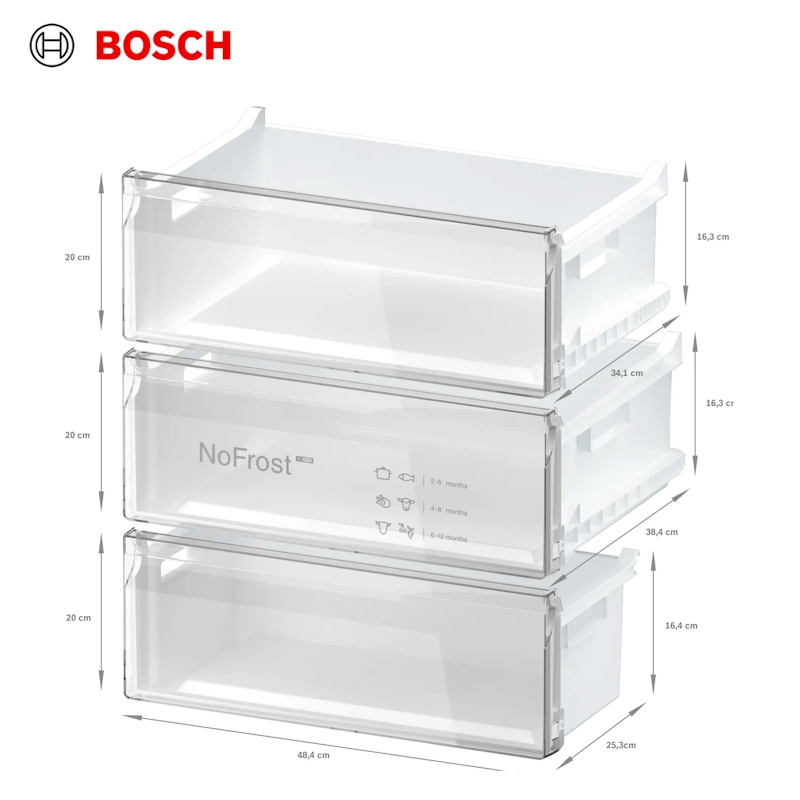 10cm wider than your standard fridge freezer this Bosch model has a fridge capacity of 311 litres, and thanks to its vita fresh system, your fresh produce will last longer too, helping to cut down on food waste.