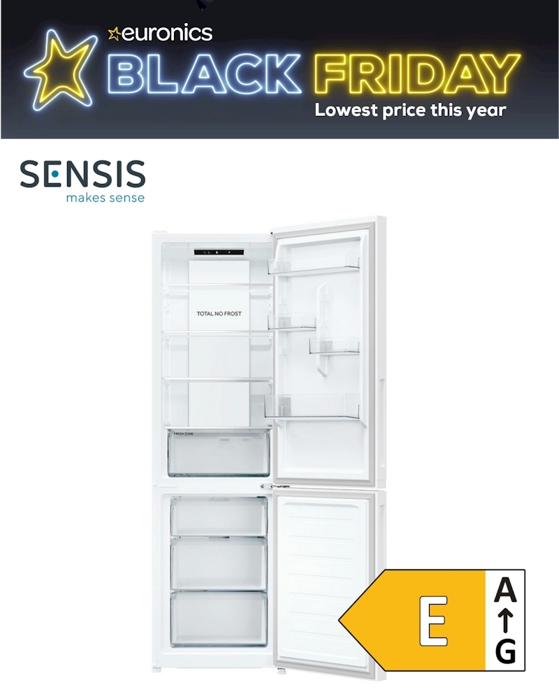 Welcome to Sensis, a new range of products developed by Euronics, taking feedback and soundings from the us, the retailers. Combining value for money and common sense design, this narrow fridge freezer is frost free, and offers nice design touches such as plenty of adjustment in the door storage.