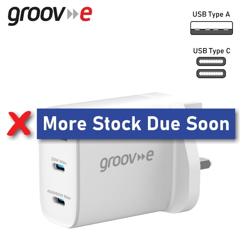 Groov-e USB A and Type C 65W GaN Mains Charger (GVMA109WE)
