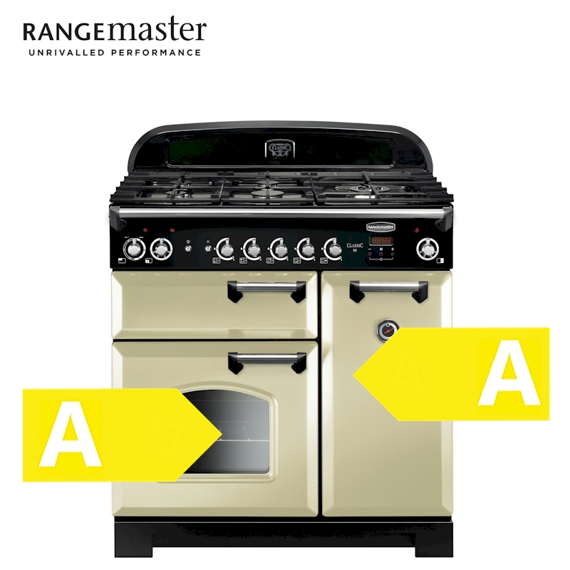 Classic 90 range cooker offers modern features combined with traditional range cooker styling. (cream with chrome trim)