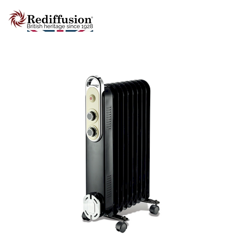 Rediffusion Vintage 2kW Oil Filled Radiator - Manual Controls (Black) (REDB14KBLKE)