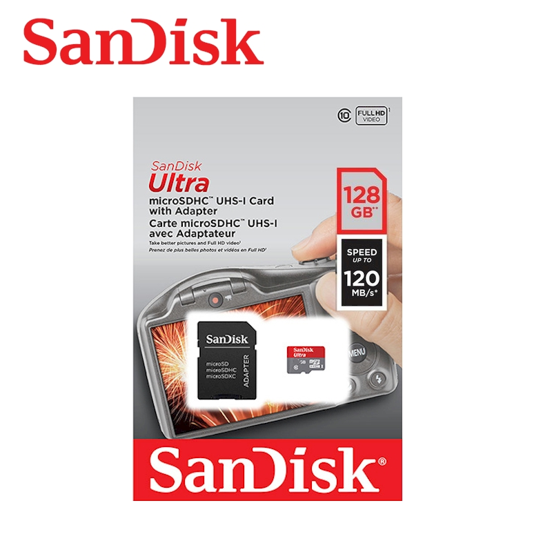Sandisk Ultra micro SDHC card is capable of storing your photos or other data and is fast enough to store full HD video clips. Commonly used in smart phones, tablets and dash cams to increase the storage capacity. It also comes supplied with an adaptor that converts it to a full size SD card for older devices or digital cameras.